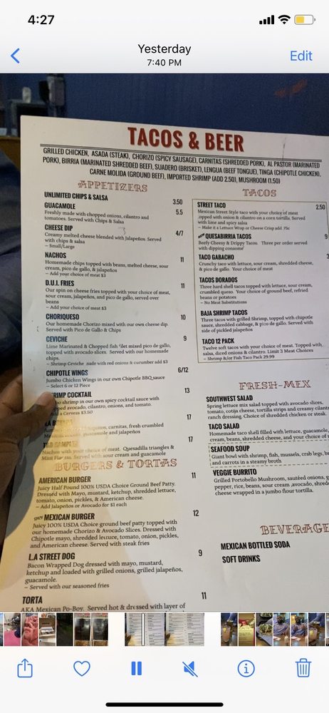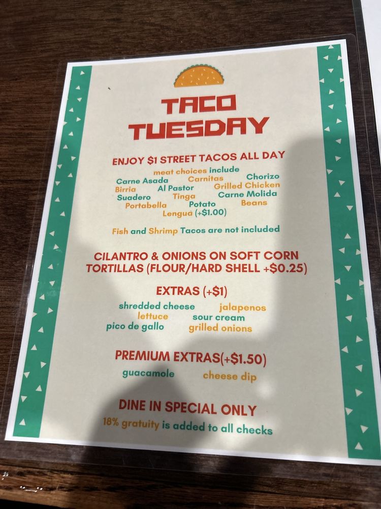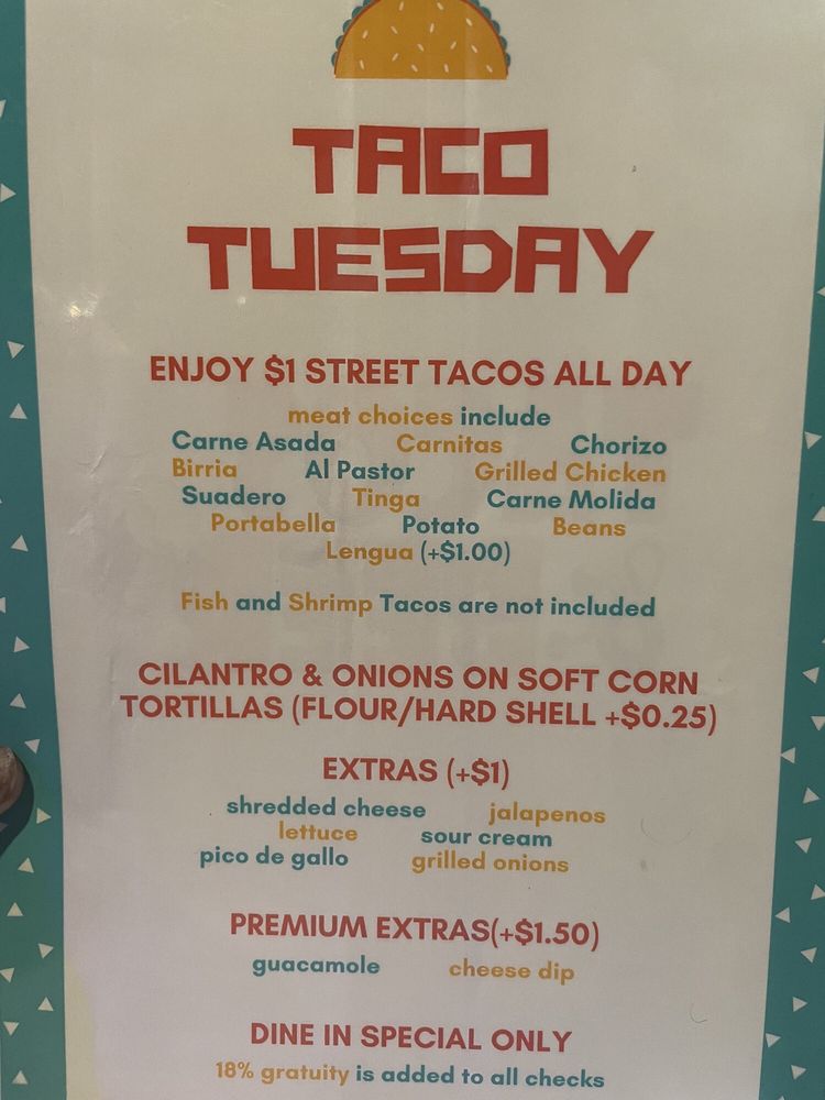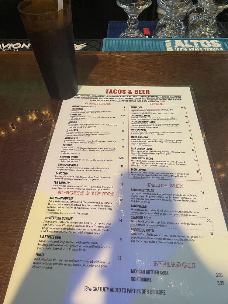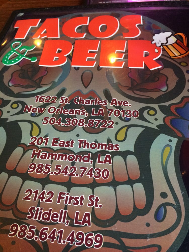 Tacos And Beer, located in New Orleans, is a vibrant Mexican bar known for its diverse menu options and lively atmosphere. Offering delivery, takeout, and reservations, this establishment also provides vegan and vegetarian choices, making it a great spot for all dietary preferences. With casual dining, free Wi-Fi, and a full bar, Tacos And Beer is perfect for lunch or dinner with friends and family. The outdoor seating area, complete with heating and coverage, is ideal for enjoying a meal in any weather. On Tuesdays and Fridays, guests can enjoy special happy hour deals, while other nights offer a fun ambiance with opportunities for dancing and games like pool. Overall, Tacos And Beer is a must-visit destination for flavorful tacos and a wide selection of beers in a lively setting.